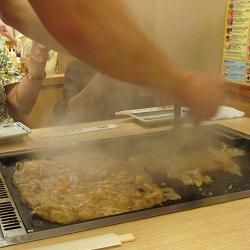 もんじゃ焼き 夏でもよしと 嫗笑む